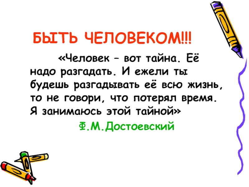 Слайд 4БЫТЬ ЧЕЛОВЕКОМ!!!
