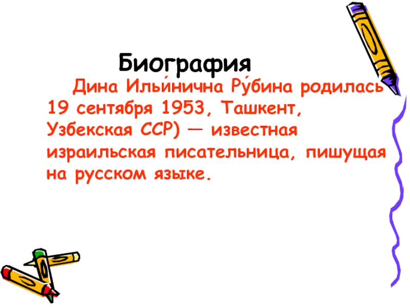 Дина Ильи́нична Ру́бина родилась 19 сентября 1953, Ташкент, Узбекская ССР) —