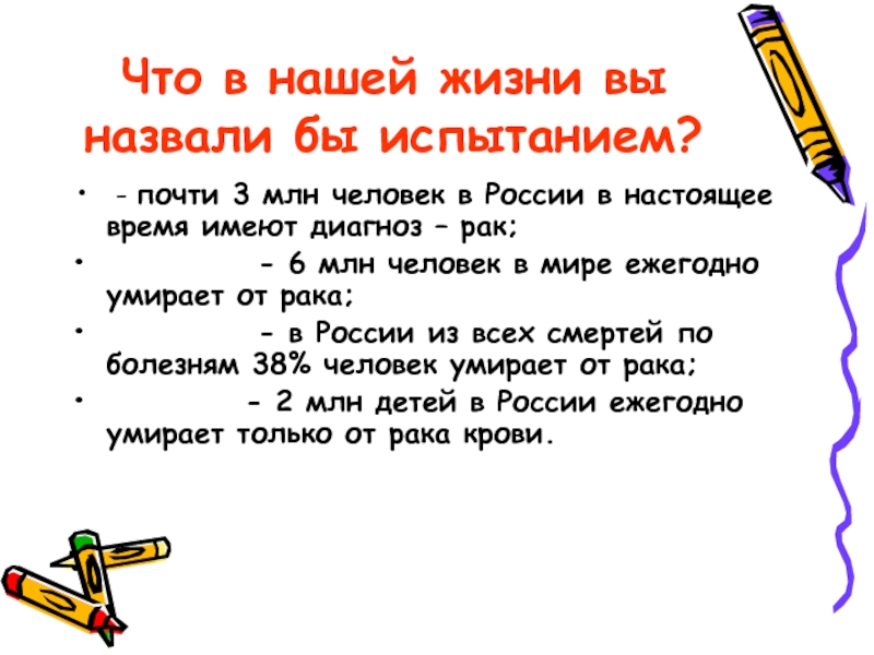Слайд 5Что в нашей жизни вы назвали бы испытанием?