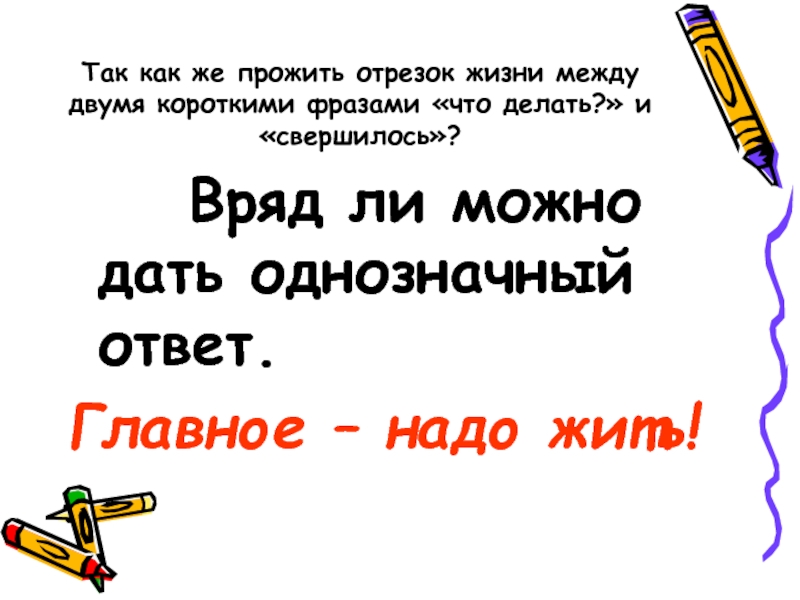 Слайд 21Так как же прожить отрезок жизни между двумя короткими фразами «что