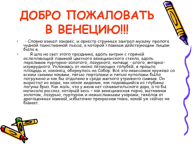 Слайд 11ДОБРО ПОЖАЛОВАТЬ В ВЕНЕЦИЮ!!!