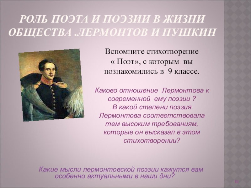 Какие мысли лермонтовской поэзии кажутся вам особенно актуальными в наши дни?
