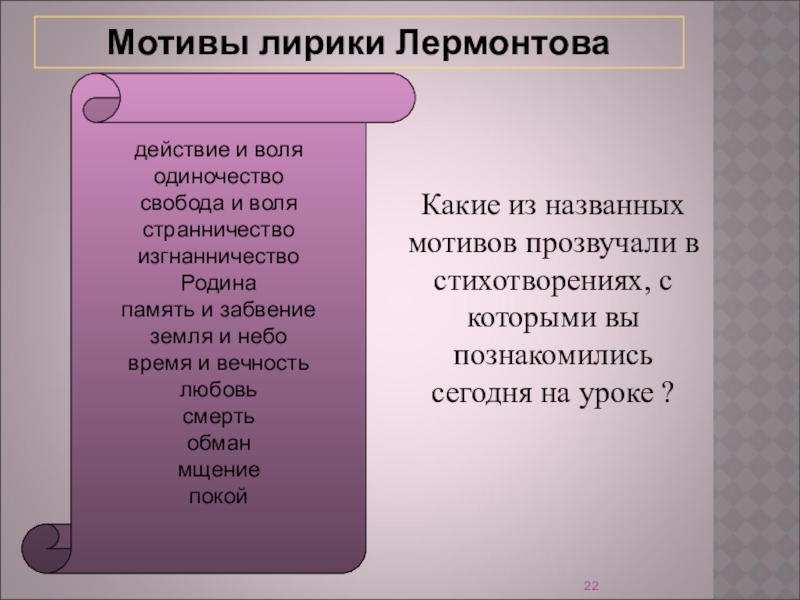 Какие из названных мотивов прозвучали в стихотворениях, с которыми вы познакомились сегодня на уроке ?