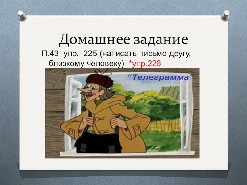 П.43 упр. 225 (написать письмо другу,близкому человеку) *упр.226