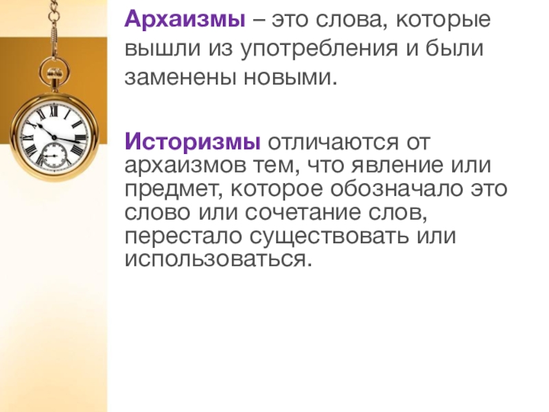 Историзмы отличаются от архаизмов тем, что явление или предмет, которое обозначало это слово или сочетание слов, перестало существовать или использоваться.
