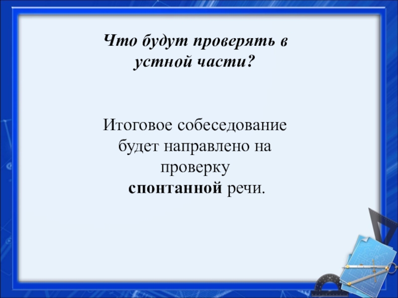 Презентация, доклад на тему Устная часть как допуск к экзамену