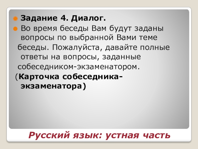 беседы. Пожалуйста, давайте полные ответы на вопросы, заданные