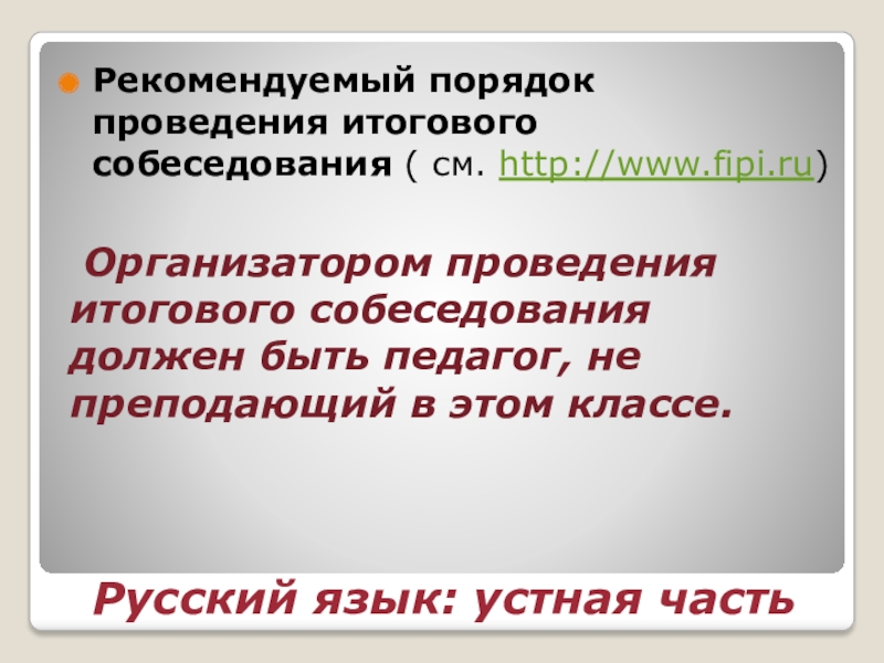 Рекомендуемый порядок проведения итогового собеседования ( см. http://www.fipi.ru)
