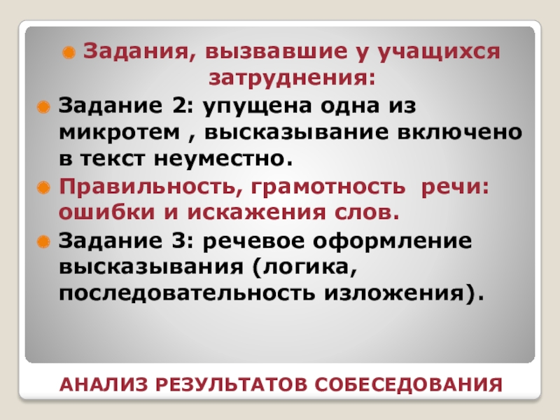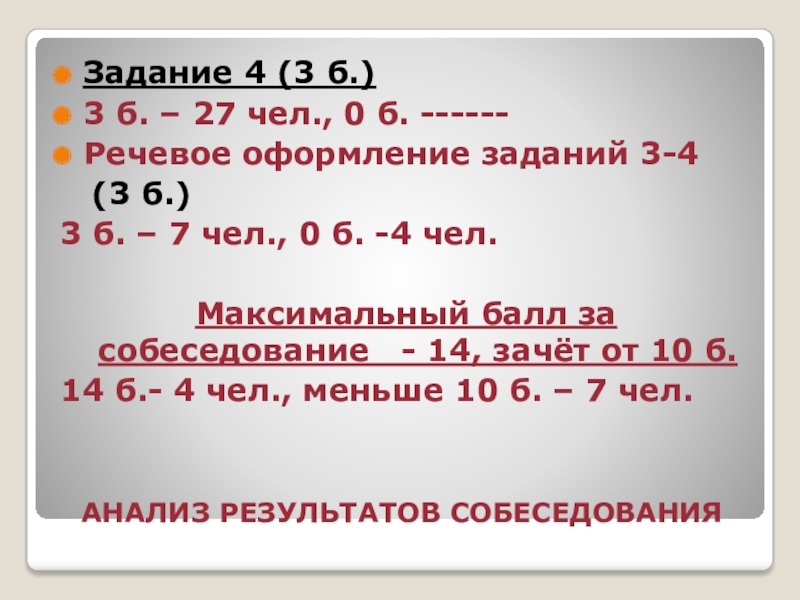 Слайд 14АНАЛИЗ РЕЗУЛЬТАТОВ СОБЕСЕДОВАНИЯ