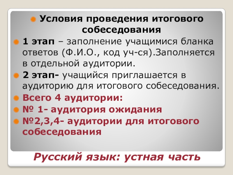 2 этап- учащийся приглашается в аудиторию для итогового собеседования.