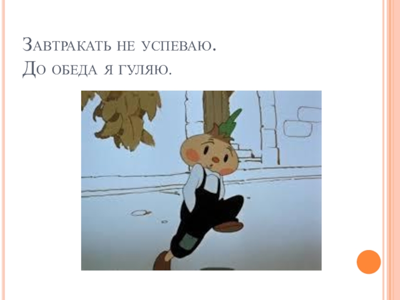 Слайд 6Завтракать не успеваю. До обеда я гуляю.