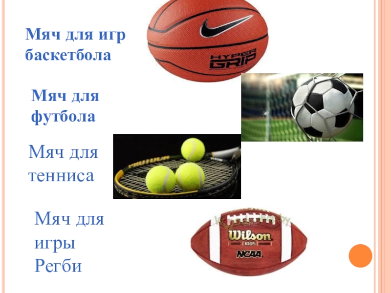 Мяч для игр баскетболаМяч для футболаМяч для теннисаМяч для игры Регби
