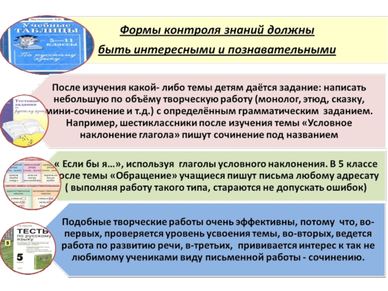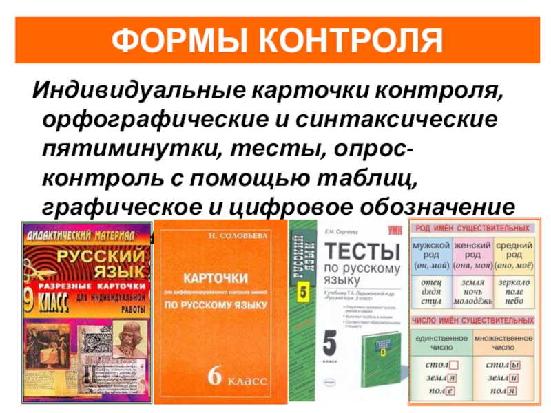 Индивидуальные карточки контроля, орфографические и синтаксические пятиминутки, тесты, опрос-контроль