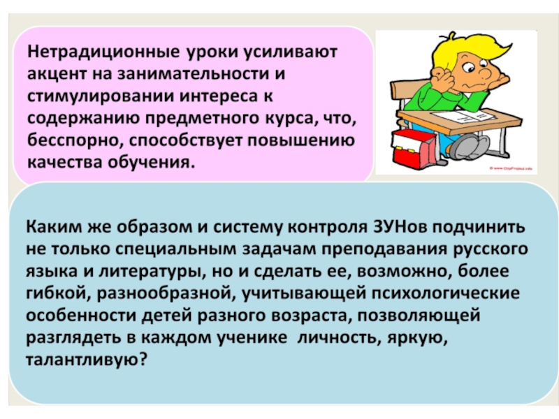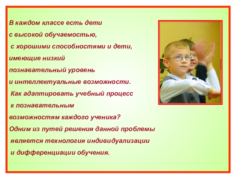 зрения каждого ученика и его «багаж» знаний, вовремя организовать