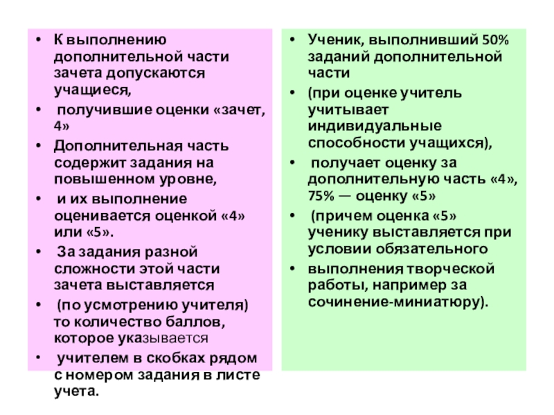 Слайд 25К выполнению дополнительной части зачета допускаются учащиеся,