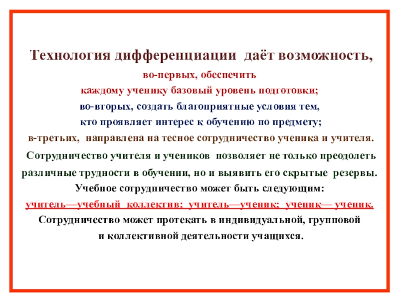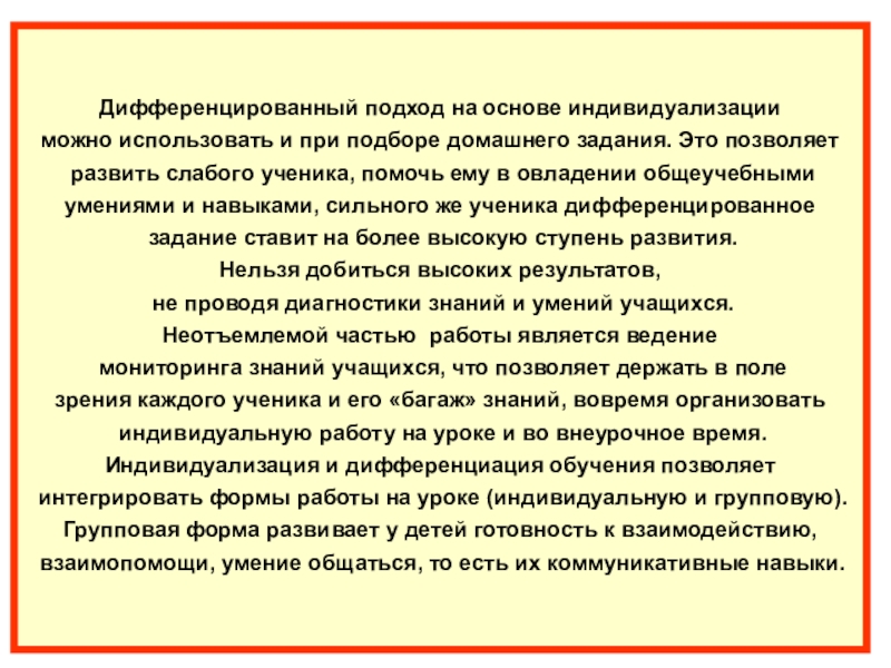 Слайд 46Дифференцированный подход на основе индивидуализации