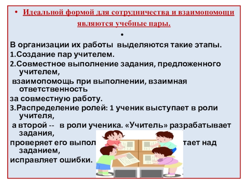 3.Распределение ролей: 1 ученик выступает в роли учителя,