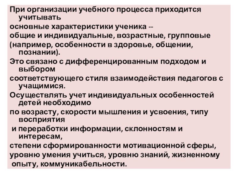 по возрасту, скорости мышления и усвоения, типу восприятия