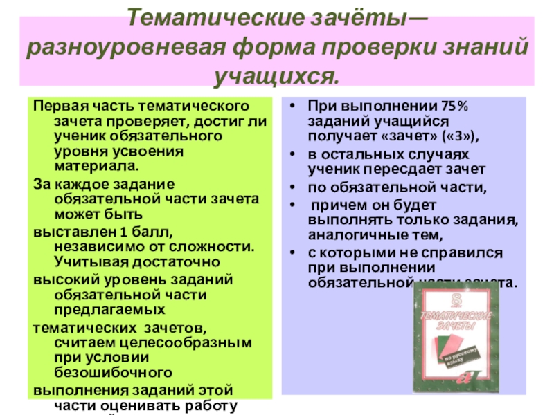 Тематические зачёты—разноуровневая форма проверки знаний учащихся.