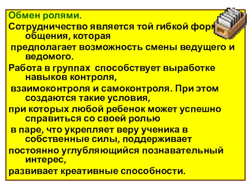 в паре, что укрепляет веру ученика в собственные силы, поддерживает
