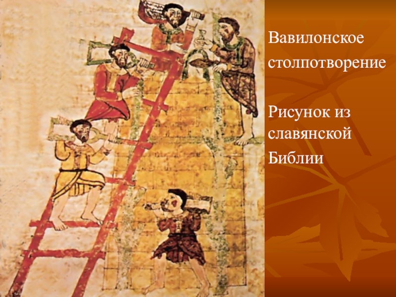 ВавилонскоестолпотворениеРисунок из славянской Библии