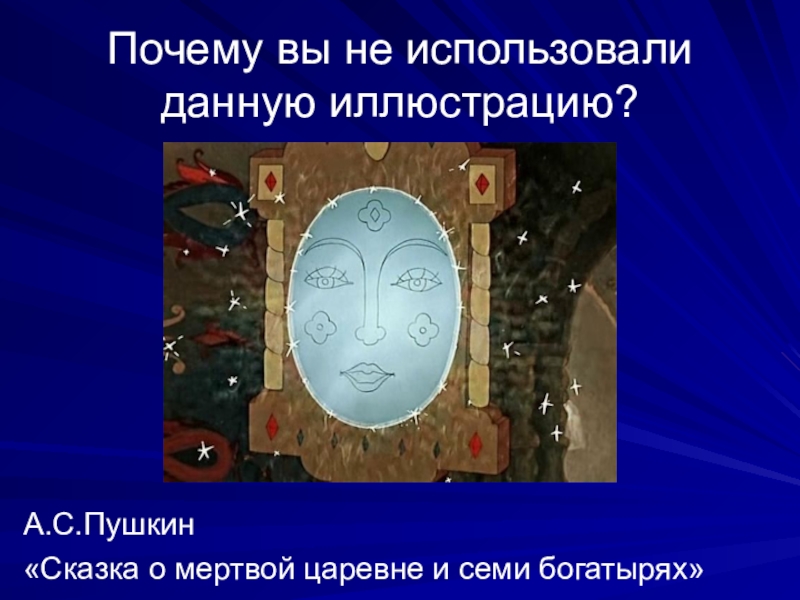 Почему вы не использовали данную иллюстрацию?А.С.Пушкин «Сказка о мертвой царевне и семи богатырях»
