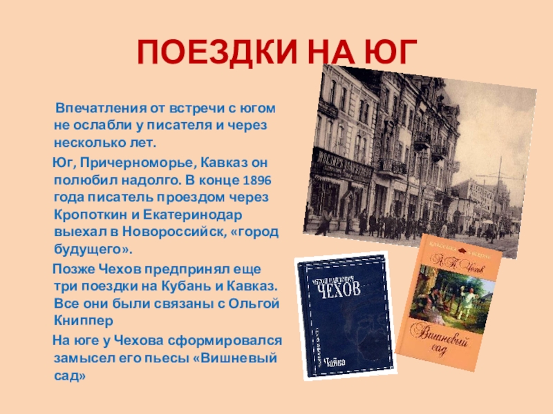 побывал в Екатеринодаре, а также во множестве казачьих станиц, устройство и быт которых впечатляли поэта.
