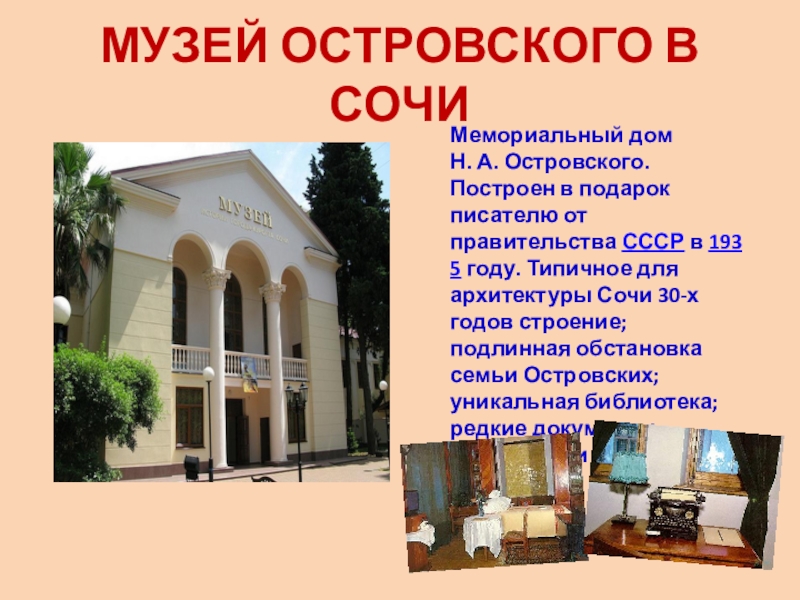 Слайд 59МУЗЕЙ ОСТРОВСКОГО В СОЧИ