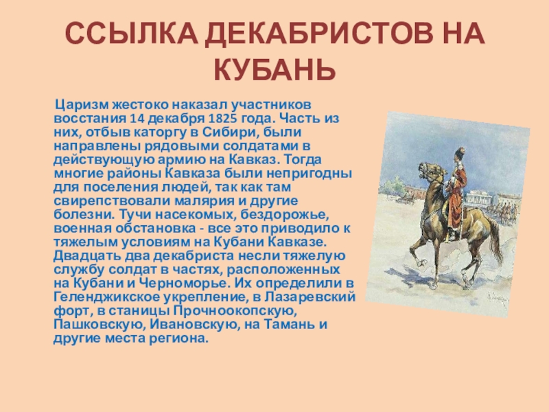 Слайд 4КУБАНЬ И ДЕКАБРИСТЫ