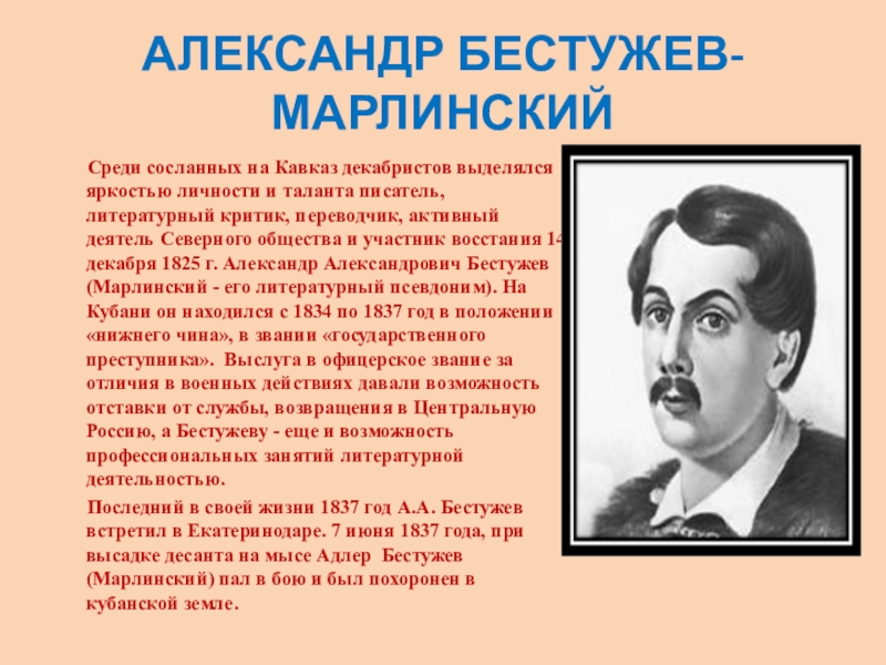 Слайд 9АЛЕКСАНДР БЕСТУЖЕВ-МАРЛИНСКИЙ