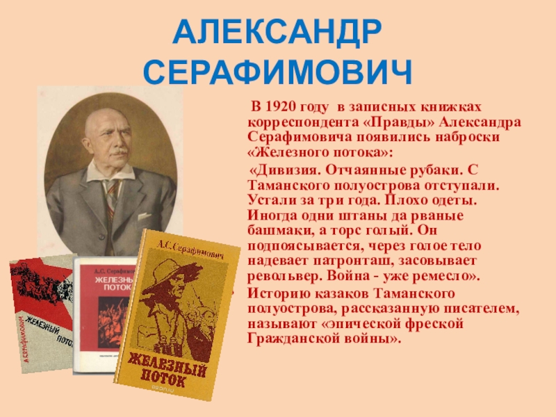 корреспондента «Правды» Александра Серафимовича появились наброски «Железного потока»: