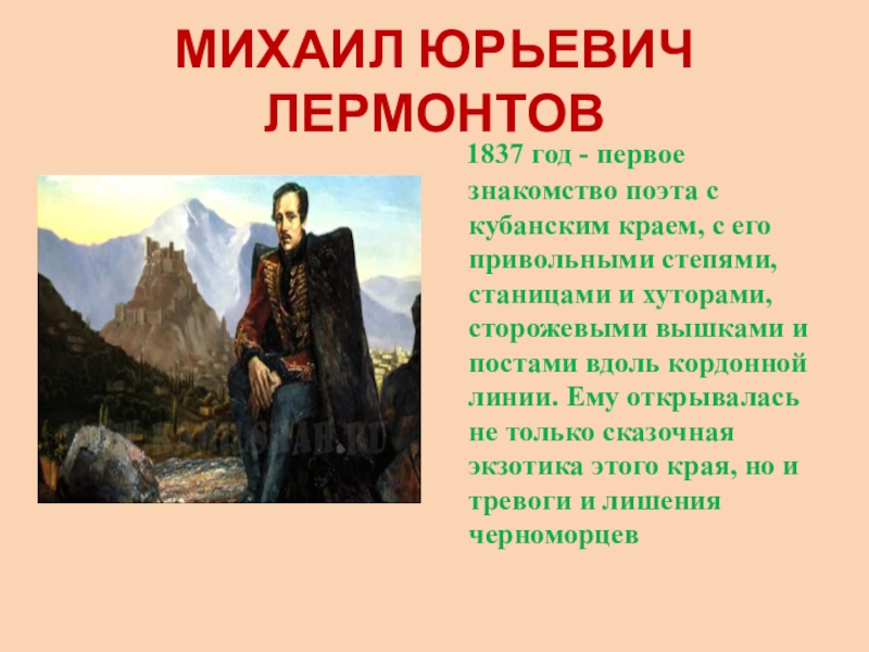 Слайд 20МИХАИЛ ЮРЬЕВИЧ ЛЕРМОНТОВ