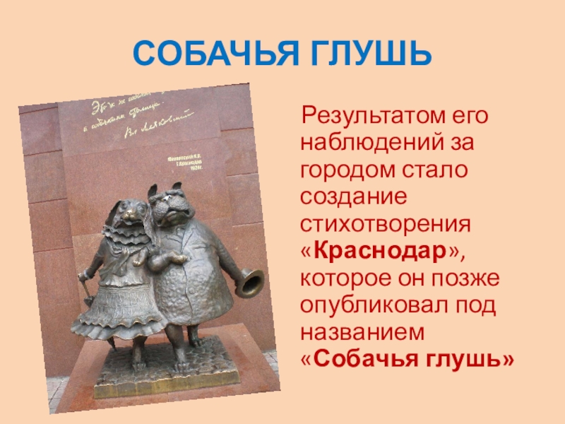 «Краснодар», которое он позже опубликовал под названием «Собачья глушь»