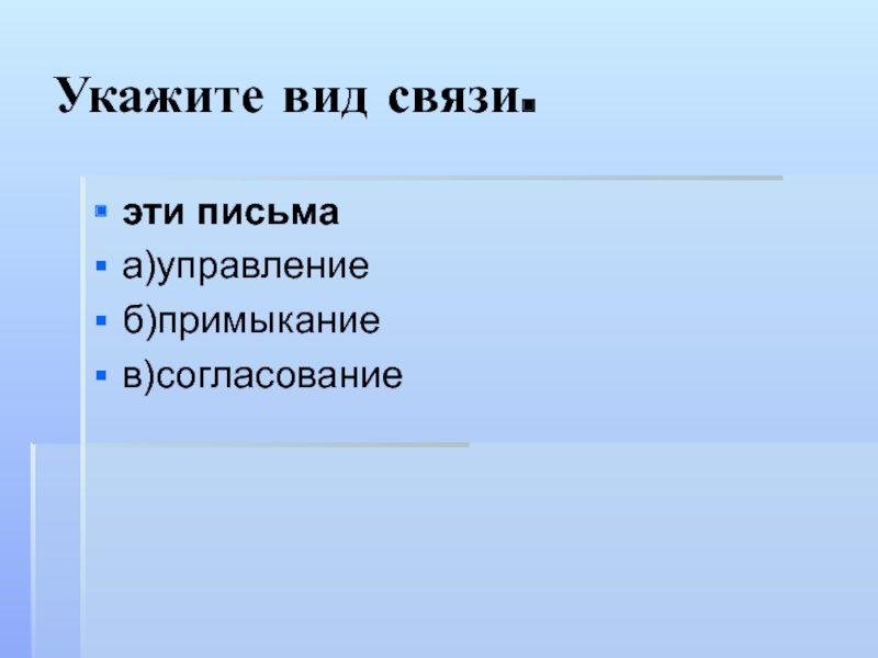 Укажите вид связи.эти письма а)управлениеб)примыканиев)согласование