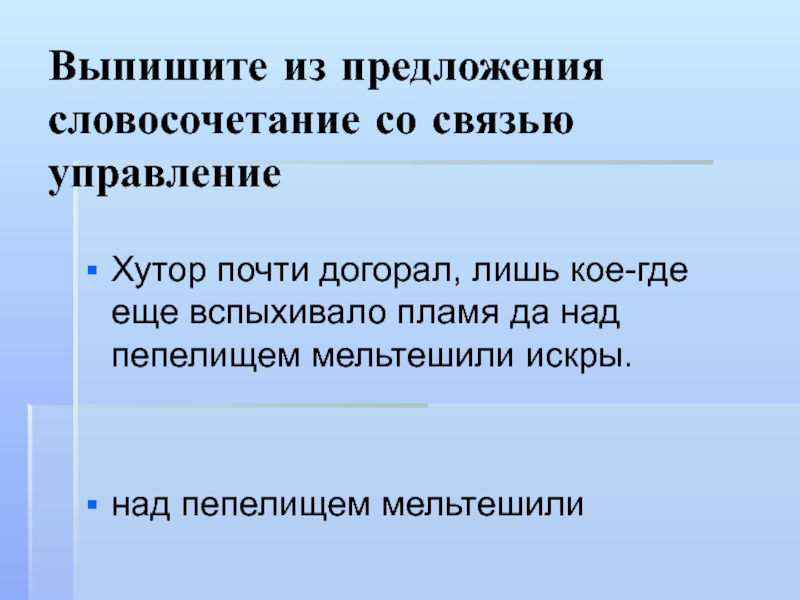 Слайд 7Выпишите из предложения словосочетание со связью управление