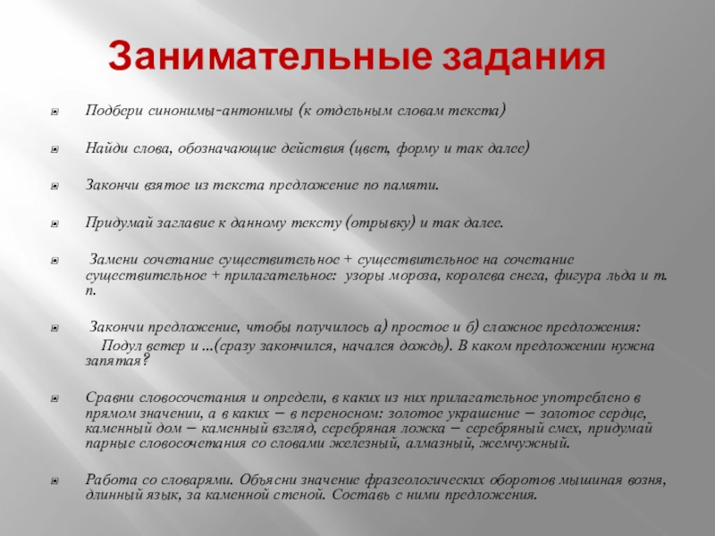 Подбери синонимы-антонимы (к отдельным словам текста)