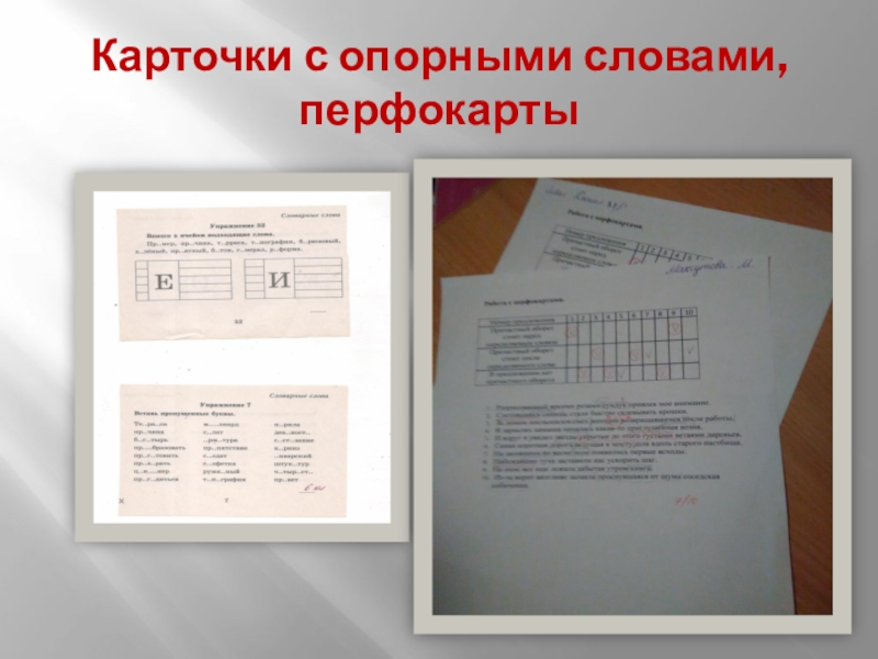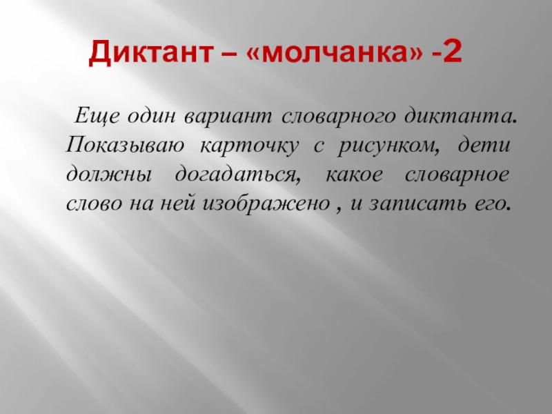 Показываю карточку с рисунком, дети должны догадаться, какое словарное слово на ней изображено , и записать его.
