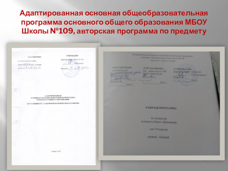 Слайд 4Адаптированная основная общеобразовательная программа основного общего образования МБОУ Школы №109, авторская