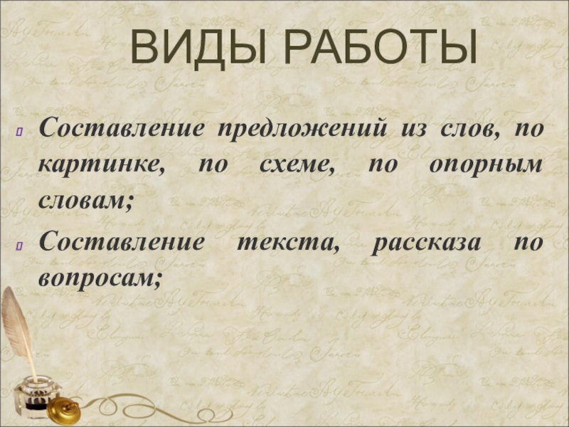 Составление предложений из слов, по картинке, по схеме, по опорным