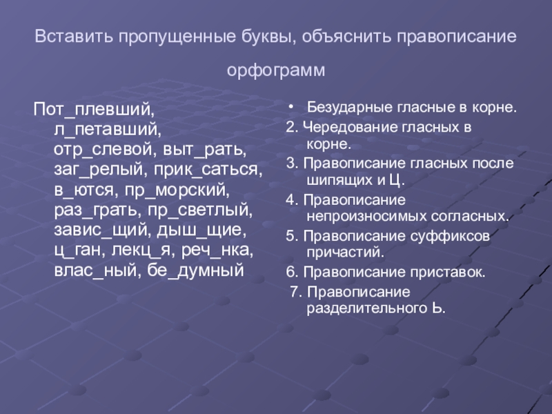 3) Мы жили в деревн_ под окном у нас был луг весь з_л_той от множества цв_тущих одуванчиков