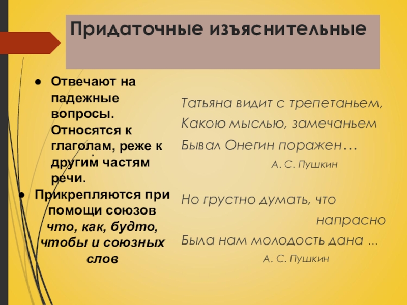 Прикрепляются при помощи союзов что, как, будто, чтобы и союзных слов