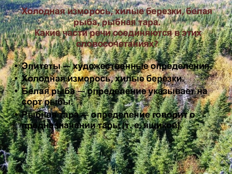 Слайд 6Холодная изморось, хилые березки, белая рыба, рыбная тара.