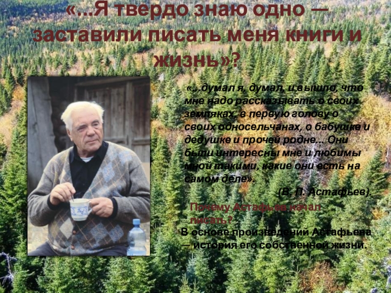 Слайд 3«...Я твердо знаю одно — заставили писать меня книги и жизнь»?