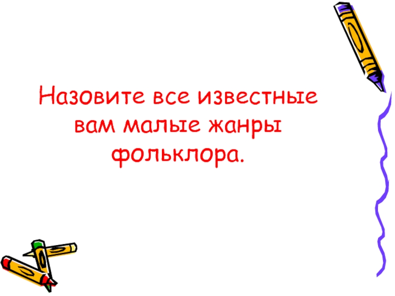 Слайд 10Назовите все известные вам малые жанры фольклора.