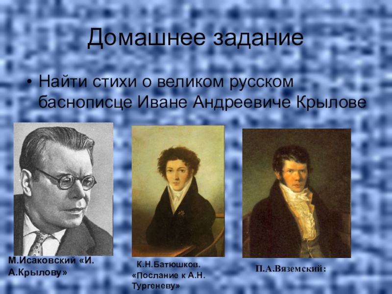 Найти стихи о великом русском баснописце Иване Андреевиче Крылове