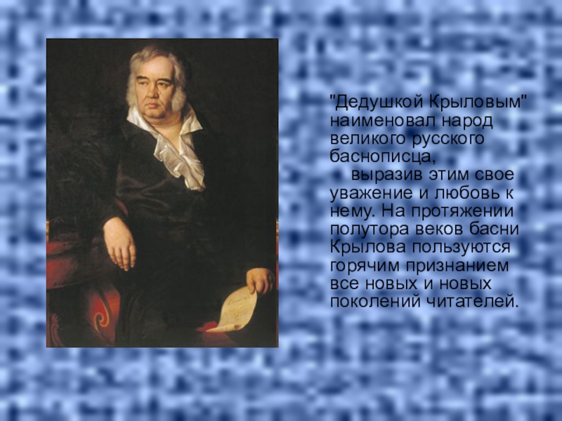 "Дедушкой Крыловым" наименовал народ великого русского баснописца,