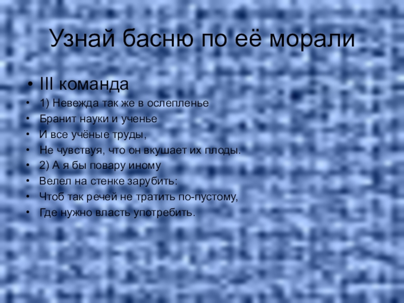 4) «и тот дурак, Кто слушает людских всех врак…»