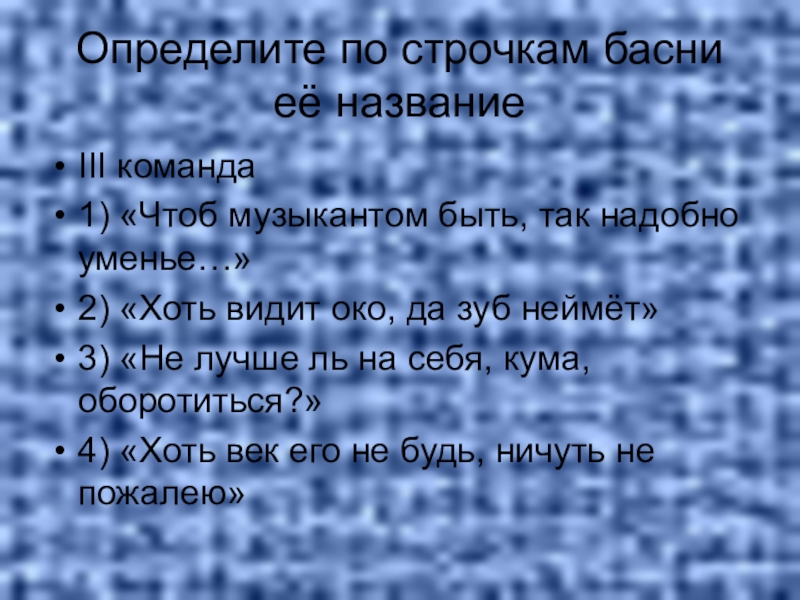 3) «Не лучше ль на себя, кума, оборотиться?»