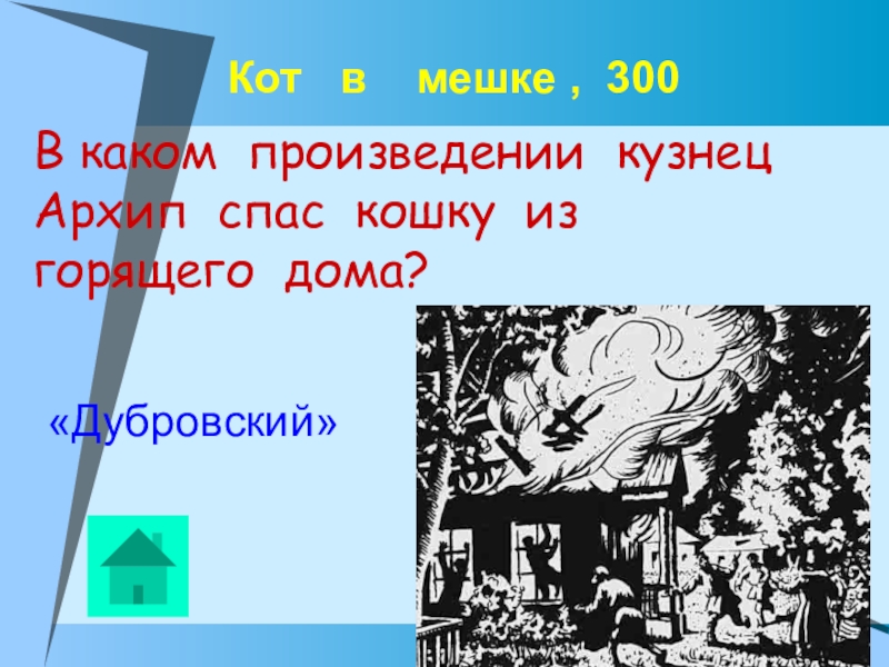 В каком произведении кузнец Архип спас кошку из горящего дома?