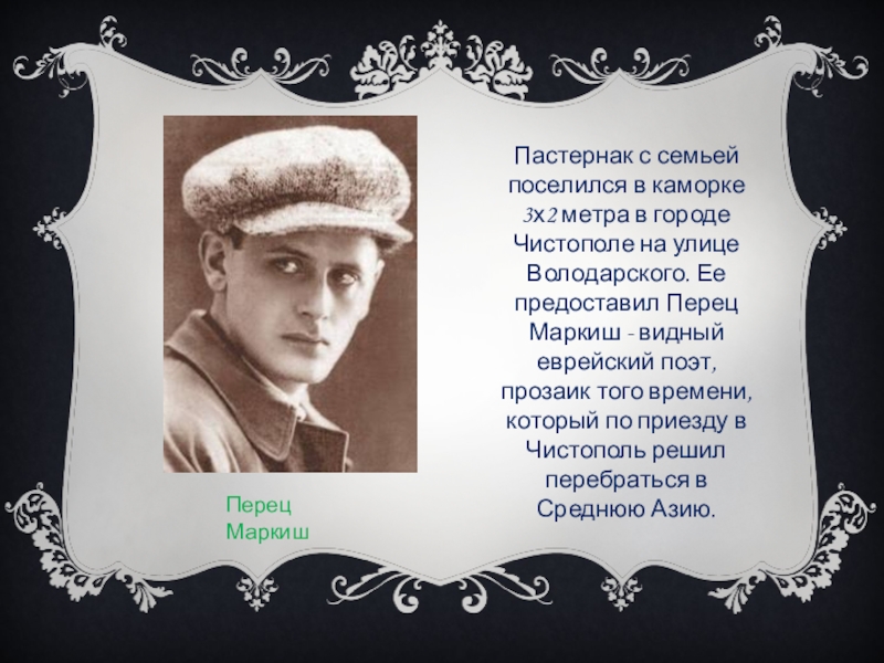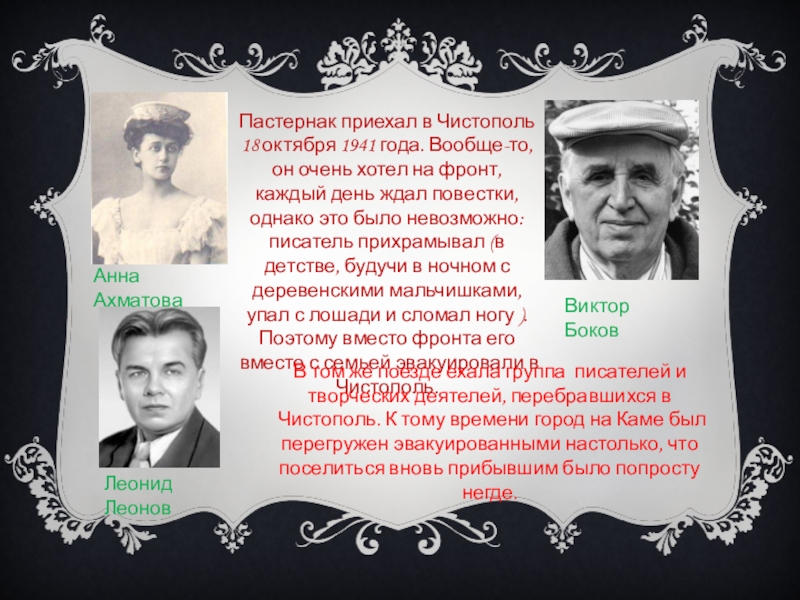 Слайд 3Пастернак приехал в Чистополь 18 октября 1941 года. Вообще-то, он очень